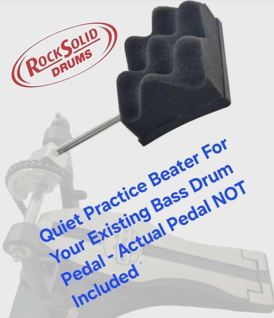 Includes our Quiet Bass Drum Pedal Beater (our 3rd picture) – Simply swap your current beater on your bass drum pedal, for our Quiet Beater and you’re set to go