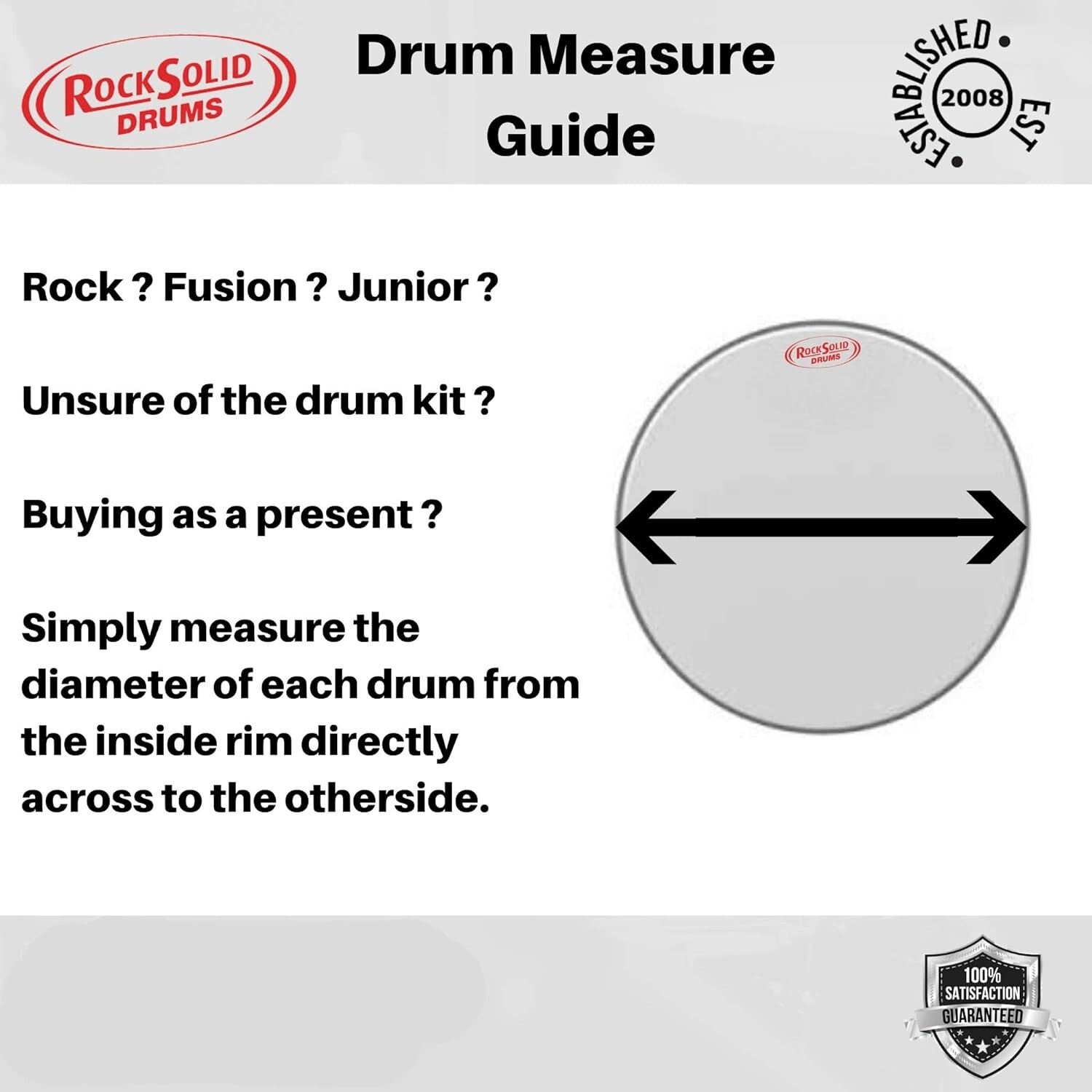 If unsure of what size your drums are, please use our measuring guide which you will find in our photos. Feel free to message us if you need any advice.